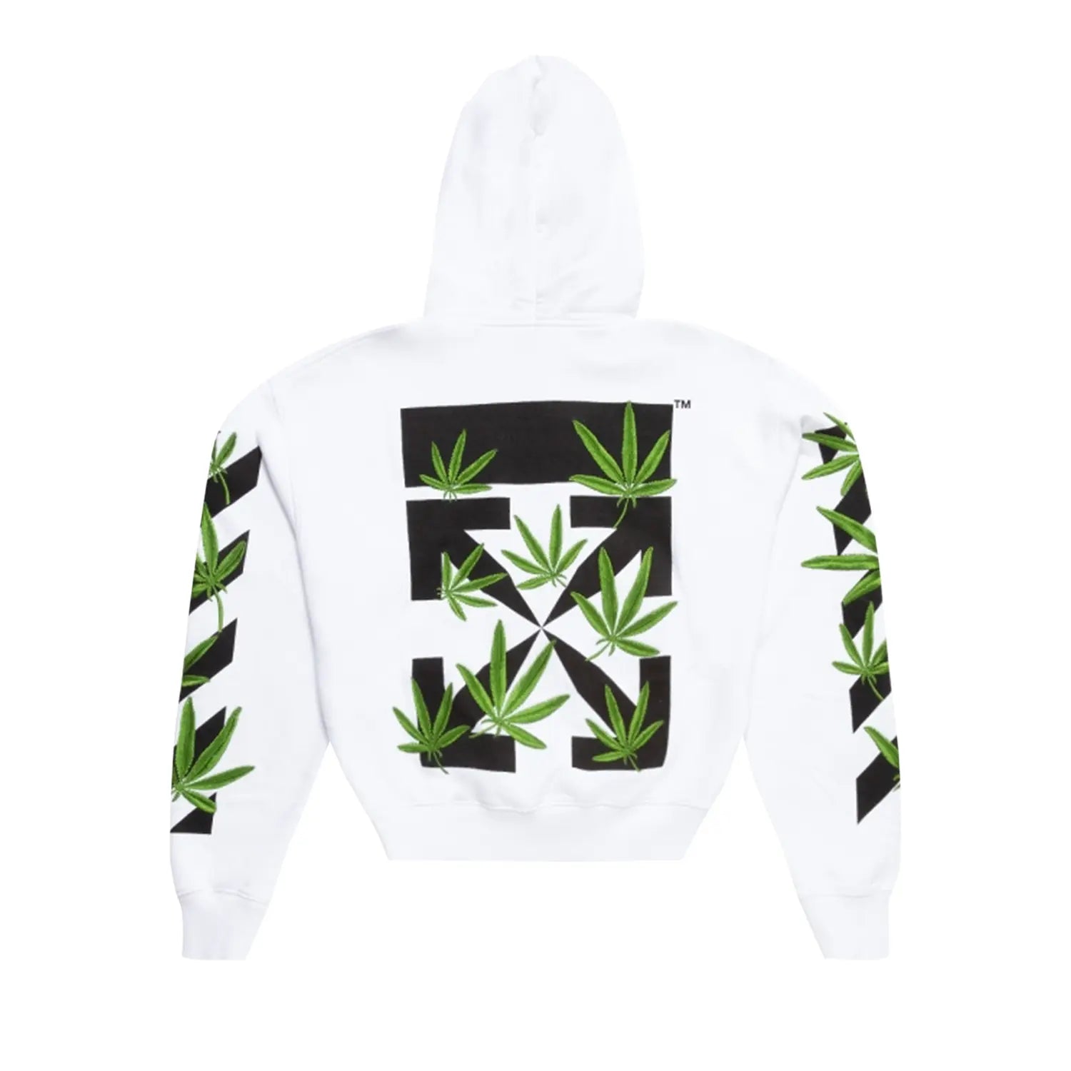 Eleva il tuo stile con l'iconica felpa Off-White "Weed Arrows". Questa felpa con cappuccio cattura l'essenza dello streetwear, presentando una base bianca che fa risaltare grafiche audaci. Il design sfoggia il caratteristico motivo a frecce incrociate di Off-White sul retro, qui arricchito da un tocco unico: foglie di cannabis stilizzate in verde brillante, che creano un contrasto accattivante e un'estetica distintiva. Le inconfondibili strisce diagonali sono presenti anche sulle maniche, rendendo il capo immediatamente riconoscibile. Realizzata con materiali di alta qualità per un comfort superiore, è l'ideale per chi vuole distinguersi con un look audace e di tendenza. Un vero must-have per gli amanti dello streetwear e per chi vuole sfoggiare un capo originale.